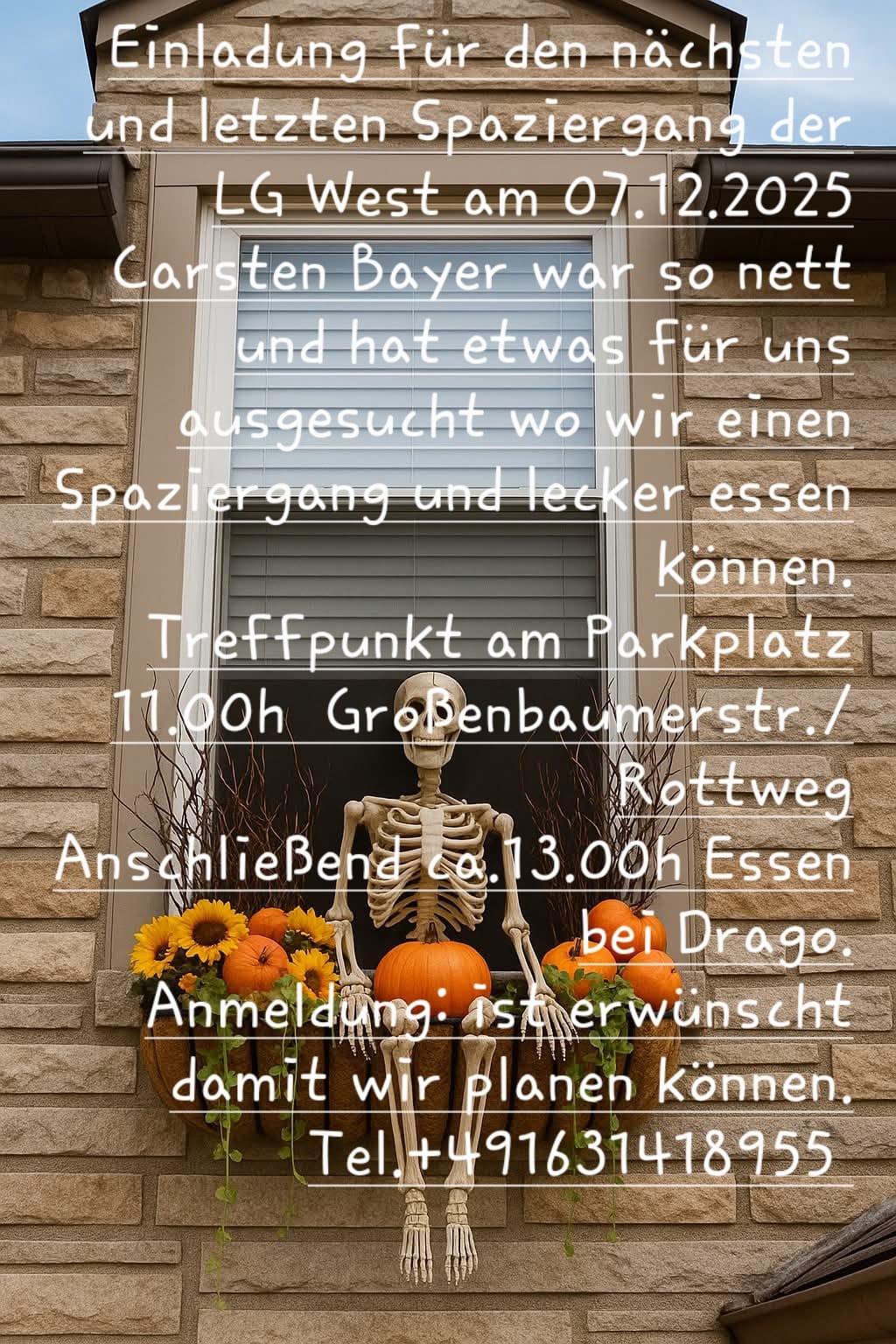 07. Dezember 202511:00 – 16:00 Uhr Mülheim a. d. R. am Parkplatz Freudhofweg an der Großenbaumerstr. Ecke Rottweg. 51°23’42.5″N 6°50’03.4″E LandesgruppeWest IMG-20251027-WA0003