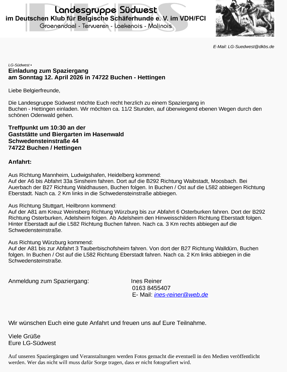 Auf unseren Spaziergängen und Veranstaltungen werden Fotos gemacht, die eventuell in den Medien des DKBS veröffentlicht werden. Wer das nicht will, muss dafür Sorge tragen, dass er nicht fotografiert wird.